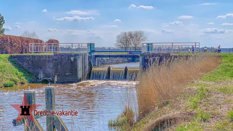 Vanuit Bronneger lopen we over het schelpenpad terug naar het kanaal. Deze kunnen we namelijk helemaal wandelend terug volgen. Rustig kabbelt het water hier van sluis naar sluis. Bij elke sluis valt het water weer 1,5 tot 2 meter lager.